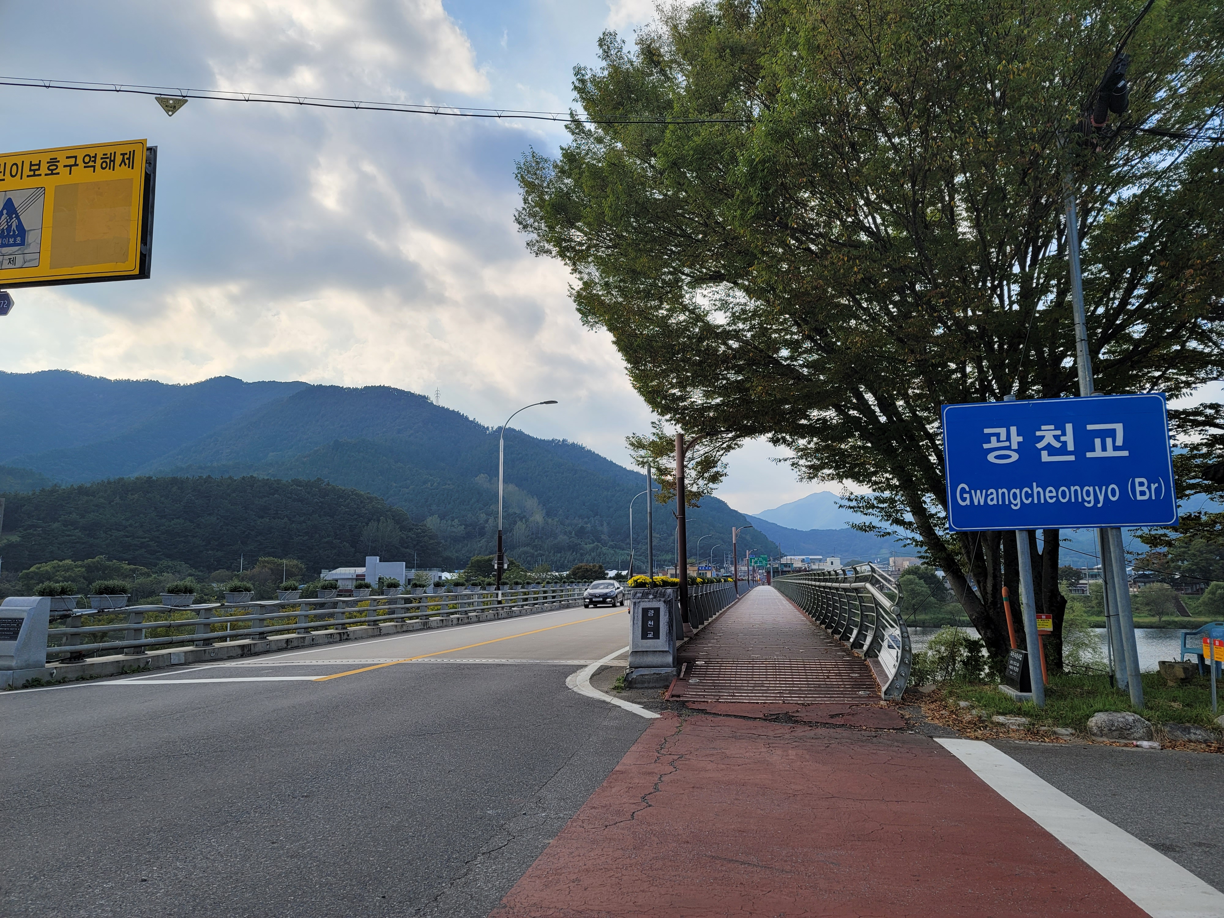 광천교로 올라가서 도로를 건너가요. 광천교 밑을 통과하면 알바~~